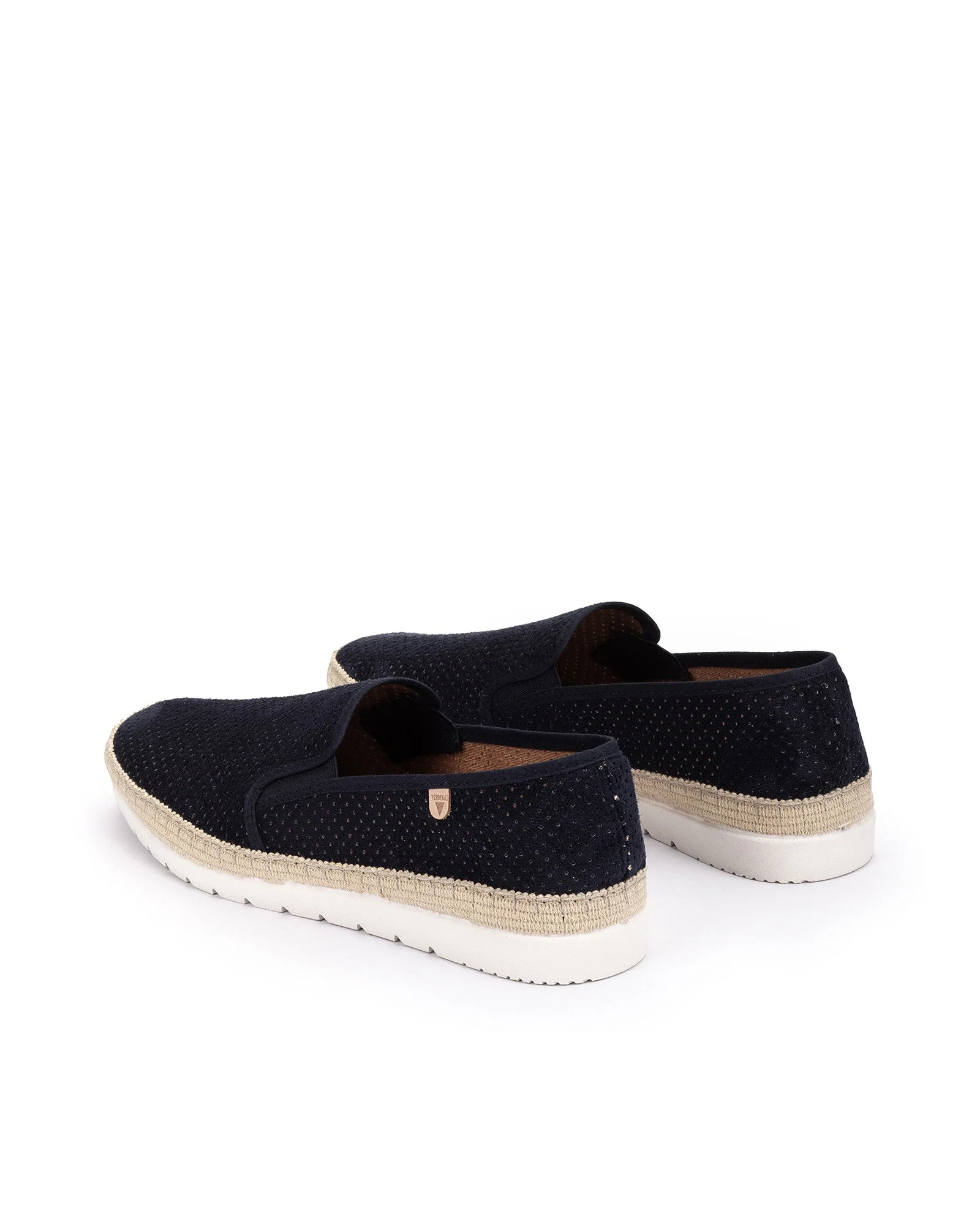 Alpargatas Boris Hole Gallery en color Marino. Fabricadas en España con material de textil micro perforado, forro y planta de piel y suela de goma ultra flexible. Cuenta con dos elásticos laterales que facilitan la adaptación al pie.