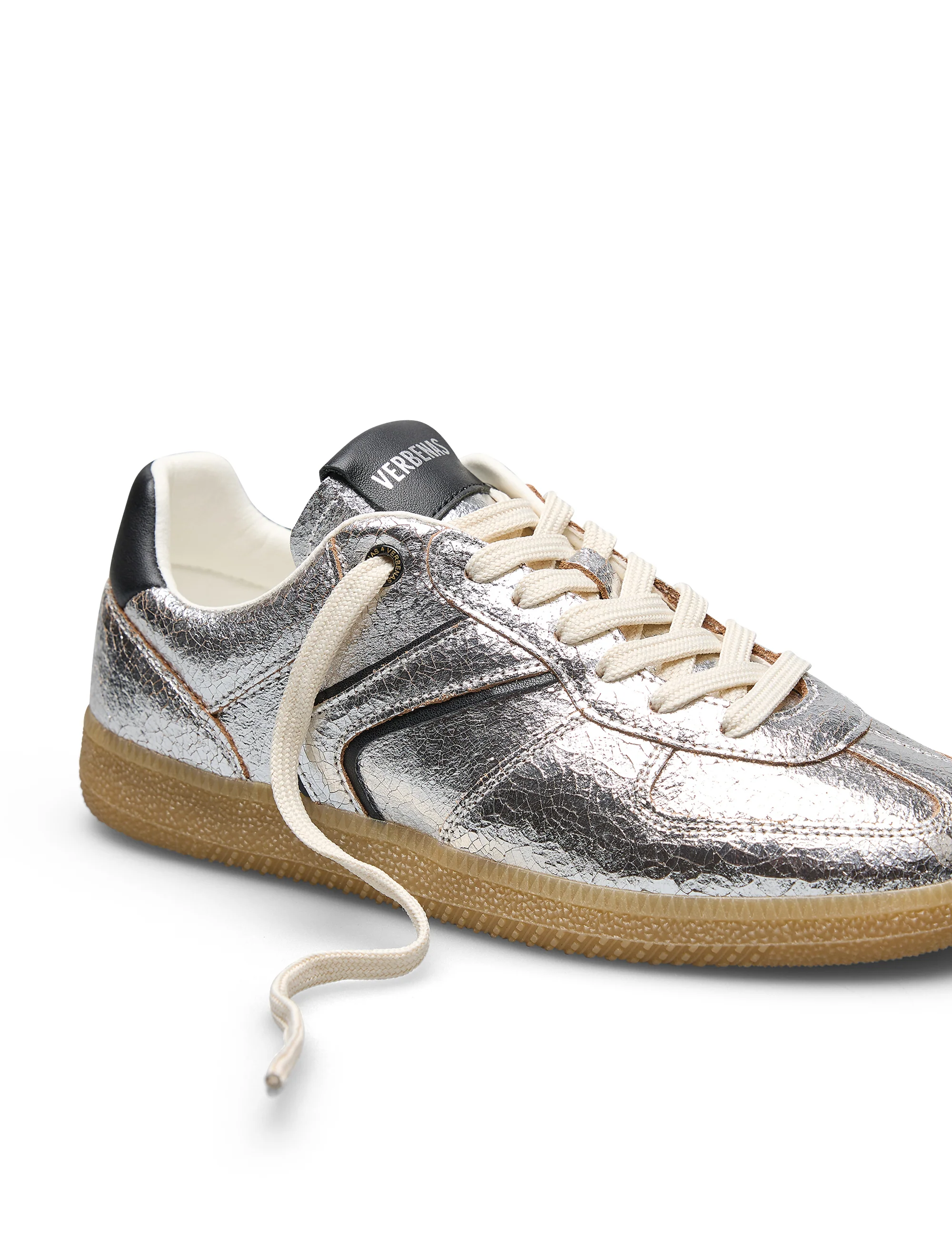 Sneakers Sora Breck en color Plata. Confeccionadas con piel laminada con acabado metalizado y efecto craqueado. Cuentan con forro interior acolchado para mayor confort,planta transpirable, flexible y confortable que absorve la pisada y suela de caucho natural.